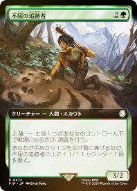 不屈の追跡者/Tireless Tracker (ふくつのついせきしゃ) (2)(緑)クリーチャー ― 人間(Human)・スカウト(Scout) MOC, レア上陸 ― 土地1つがあなたのコントロール下で戦場に出るたび、調査を行う。(手掛かり(Clue)トークン1つを生成する。それは、「(2),このアーティファクトを生け贄に捧げる:カード1枚を引く。」を持つアーティファクトである。)あなたが手掛かり1つを生け贄に捧げるたび、不屈の追跡者の上に+1/+1カウンター1個を置く。3/2Illus.Eric Deschamps (314/0)