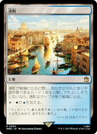 港町/Port Town (みなとまち)土地 AFC, レア港町が戦場に出るに際し、あなたはあなたの手札から平地(Plains)カード1枚か島(Island)カード1枚を公開してもよい。そうしないなら、港町はタップ状態で戦場に出る。(T):(白)か(青)を加える。Illus.Kamila Szutenberg (255/62)