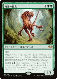 死霧の猛禽/Deathmist Raptor (しぎりのもうきん) (1)(緑)(緑)クリーチャー ― 恐竜(Dinosaur)・ビースト(Beast) C19, 神話レア接死あなたがコントロールするパーマネントが1つ表向きになるたび、あなたの墓地にある死霧の猛禽を表向きまたは裏向きの状態で戦場に戻してもよい。大変異(4)(緑)(あなたはこのカードを、(3)で2/2クリーチャーとして裏向きに唱えてもよい。これの大変異コストで、これをいつでも表向きにしてもよい。そうしたなら、これの上に+1/+1カウンターを1個置く。)3/3Illus.Filip Burburan (160/302)