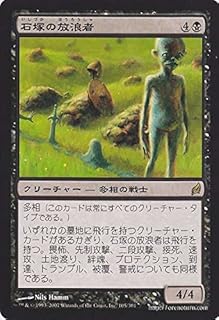 石塚の放浪者/Cairn Wanderer (いしづかのほうろうしゃ) (4)(黒)クリーチャー ― 多相の戦士(Shapeshifter) LRW, レア多相(このカードは、すべてのクリーチャー・タイプである。)いずれかの墓地に飛行を持つクリーチャー・カードがあるかぎり、石塚の放浪者は飛行を持つ。畏怖、先制攻撃、二段攻撃、接死、速攻、土地渡り、絆魂、プロテクション、到達、トランプル、被覆、警戒についても同様である。4/4Illus.Nils Hamm (105/301)