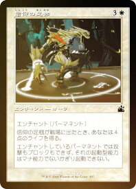 信仰の足枷/Faith's Fetters (しんこうのあしかせ) (3)(白)エンチャント ― オーラ(Aura) DDC, コモンエンチャント(パーマネント)信仰の足枷が戦場に出たとき、あなたは4点のライフを得る。エンチャントされているパーマネントは攻撃したりブロックしたりできず、それの起動型能力はそれがマナ能力でないかぎり起動できない。Illus.Brian Despain (20/62)