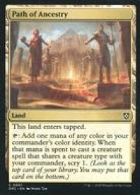 祖先の道/Path of Ancestry (そせんのみち)土地 C17, コモン祖先の道はタップ状態で戦場に出る。(T):あなたの統率者の固有色のうち好きな色1色のマナ1点を加える。このマナがあなたの統率者と共通のクリーチャー・タイプを持つクリーチャー呪文を唱えるために支払われたとき、占術1を行う。(あなたのライブラリーの一番上のカードを見る。あなたはそのカードをあなたのライブラリーの一番下に置いてもよい。)Illus.Alayna Danner (56/309)