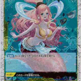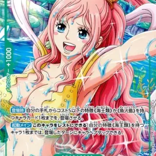 種類:CHARACTER コスト:<br>3 属性:斬 パワー:<br>- カウンター:<br>1000 色:<br>黄 ブロックアイコン: 特徴:<br>人魚族/魚人島 テキスト:<br>【起動メイン】このキャラをトラッシュに置くことができる:自分のリーダーが「しらほし」の場合、自分のデッキの上から1枚を、ライフの上に加える。その後、自分の特徴《海王類》を持つキャラすべてを、このターン中、パワー+1000。