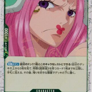 種類:CHARACTER コスト:<br>5 属性:斬 パワー:<br>6000 カウンター:<br>1000 色:<br>緑 ブロックアイコン: 特徴:<br>超新星/ボニー海賊団 テキスト:<br>【登場時】自分のリーダーが特徴《超新星》を持つ場合、自分のドン!!1枚までを、アクティブにする。その後、相手のコスト8以下のキャラ1枚までは、次の相手のエンドフェイズ終了時まで、レストにできない。