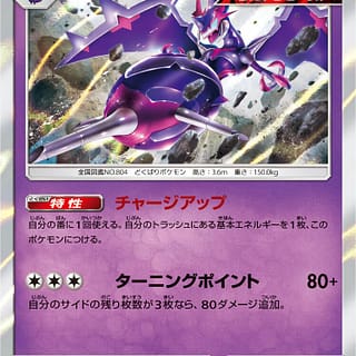 特性:エキサイトダッシュ このポケモンがベンチにいて、自分の場に「メガシンカex」がいるなら、自分の番に1回使える。このポケモンをバトルポケモンと入れ替える。