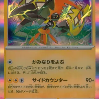 特殊能力:ポケパワーデルタコントロール このパワーは、自分の番に1回使うことができる。自分の山札の上からカードを4枚見て、好きなカードを1枚選び出し、手札に加える。その後、残りのカードを好きな順番に入れ替え、その山札の下にもどす。このポケモンが特殊状態なら、このパワーを使うことはできない。