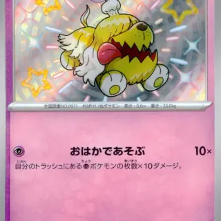 説明文:このカードは、自分の手札を1枚トラッシュしなければ使えない。自分の山札からたねポケモンを1枚選び、相手に見せて、手札に加える。そして山札を切る。