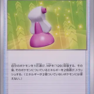 説明文:自分の山札から、「サポーター」と「基本エネルギー」と「名前に『ギンガ団の発明』とつくトレーナー」を、それぞれ1枚ずつ選び、相手プレイヤーに見せてから、手札に加える。その後、山札を切る。サポーターは、自分の番に1回だけ使える。使ったら、自分のバトル場の横におき、自分の番の終わりにトラッシュ。