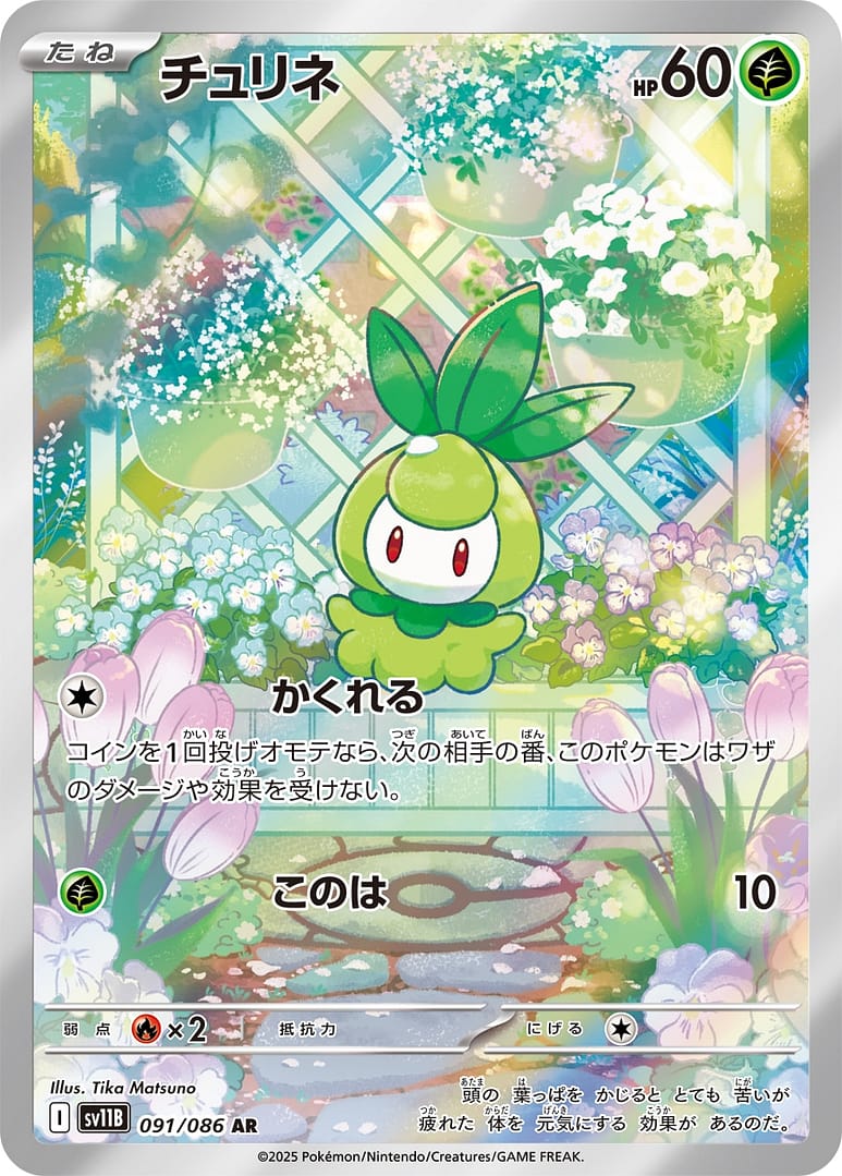 ワザ1:かくれる 無 コインを1回投げオモテなら、次の相手の番、このポケモンはワザのダメージや効果を受けない。