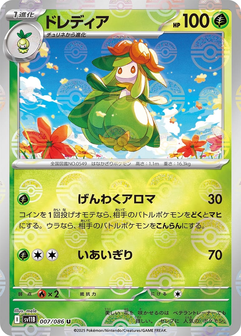 ワザ1:げんわくアロマ 草 30 コインを1回投げオモテなら、相手のバトルポケモンをどくとマヒにする。ウラなら、相手のバトルポケモンをこんらんにする。