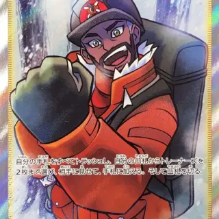 説明文:このカードは、自分の手札がこのカード1枚だけのときにしか使えない。自分のトラッシュから[闘]ポケモンを1枚選び、ベンチに出す。その後、自分の山札を5枚引く。