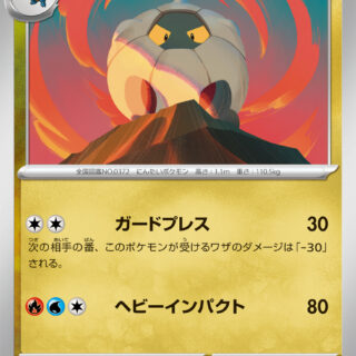 説明文:このカードは「マグマ団」のポケモンにしかつけられず、つけた番の終わりにトラッシュする。このカードはポケモンについているかぎり、[闘]エネルギー2個ぶんとしてはたらく。(このカードが「マグマ団」のポケモン以外についているなら、トラッシュする。)
