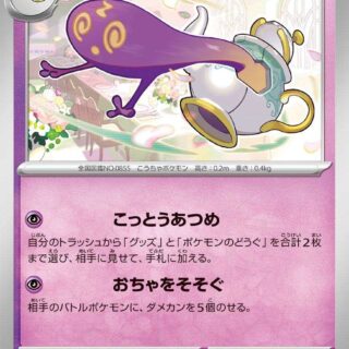 特性:ナマコブシなげ このカードが手札にあるなら、自分の番に1回使える。このカードを山札の下にもどす。その後、自分の山札を1枚引く。この番、すでに別の「ナマコブシなげ」を使っていたなら、この特性は使えない。