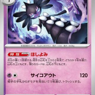 特性:エアロトレイル 自分の番に、このカードを手札からベンチに出したとき、1回使える。自分の場のポケモンについている[雷]エネルギーを好きなだけ、このポケモンにつけ替える。つけ替えた場合、このポケモンをバトルポケモンと入れ替える。