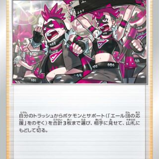 説明文:このカードを使ったら、自分の番は終わる。自分の山札にある[炎]エネルギーを4枚まで、自分のポケモン1匹につける。そして山札を切る。