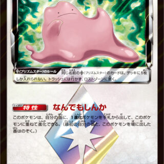 ワザ1:トリニティスター 無 30 このワザは、自分のベンチに[草]と[水]と[雷]ポケモンがいるときにしか使えない。自分の山札にある基本エネルギーを3枚まで、自分のポケモンに好きなようにつける。そして山札を切る。