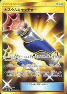 説明文:「カスタムキャッチャー」は、1枚または2枚同時に使え、使った枚数によって効果が変わる。◆1枚使ったなら、自分の手札が3枚になるように、山札を引く。◆2枚同時に使ったなら、相手のベンチポケモンを1匹選び、バトルポケモンと入れ替える。(この効果は、2枚で1回はたらく。)