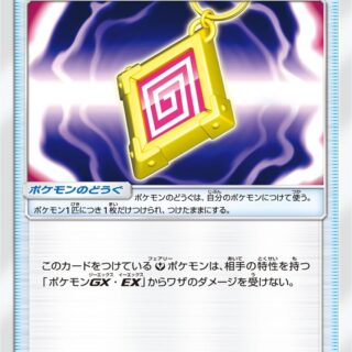 説明文:このカードをつけている[フェアリー]ポケモンは、相手の[ドラゴン]タイプの「ポケモンGX・EX」からワザのダメージを受けない。