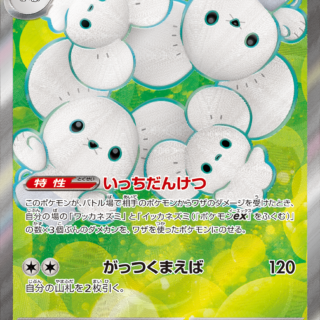 説明文:自分または相手の山札を上から5枚見て、その中から好きなカードを1枚選ぶ。残りのカードを山札にもどして切り、選んだカードを山札の上にもどす。
