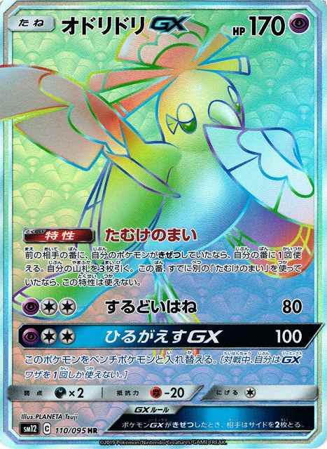 特性:たむけのまい 前の相手の番に、自分のポケモンがきぜつしていたなら、自分の番に1回使える。自分の山札を3枚引く。この番、すでに別の「たむけのまい」を使っていたなら、この特性は使えない。