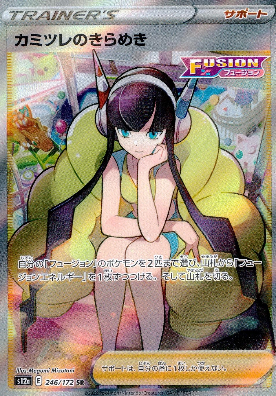 説明文:自分の「フュージョン」のポケモンを2匹まで選び、山札から「フュージョンエネルギー」を1枚ずつつける。そして山札を切る。