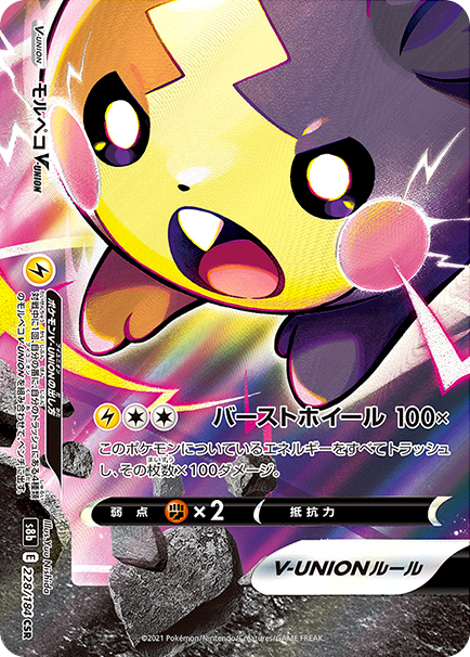 ワザ3:バーストホイール 雷無無 100× このポケモンについているエネルギーをすべてトラッシュし、その枚数×100ダメージ。