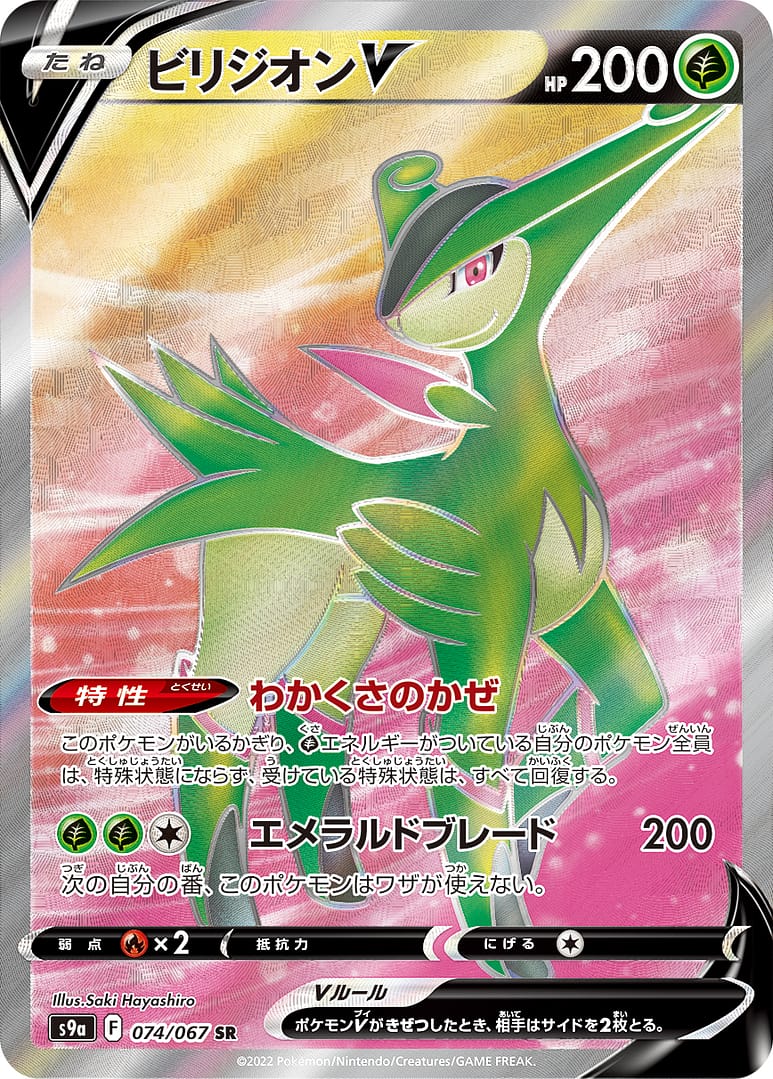 特性:わかくさのかぜ このポケモンがいるかぎり、[草]エネルギーがついている自分のポケモン全員は、特殊状態にならず、受けている特殊状態は、すべて回復する。