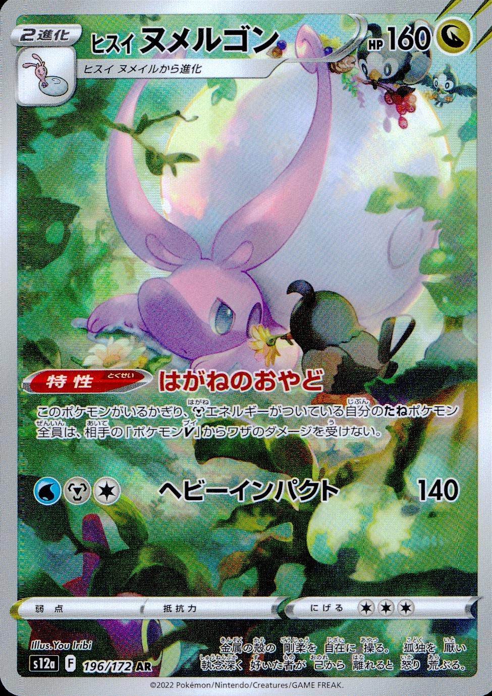 特性:はがねのおやど このポケモンがいるかぎり、[鋼]エネルギーがついている自分のたねポケモン全員は、相手の「ポケモンV」からワザのダメージを受けない。