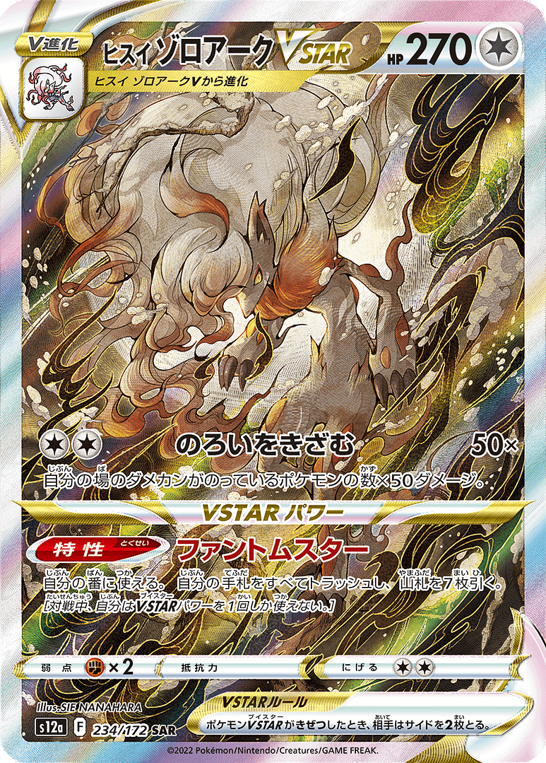 特性:ファントムスター 自分の番に使える。自分の手札をすべてトラッシュし、山札を7枚引く。[対戦中、自分はVSTARパワーを1回しか使えない。]