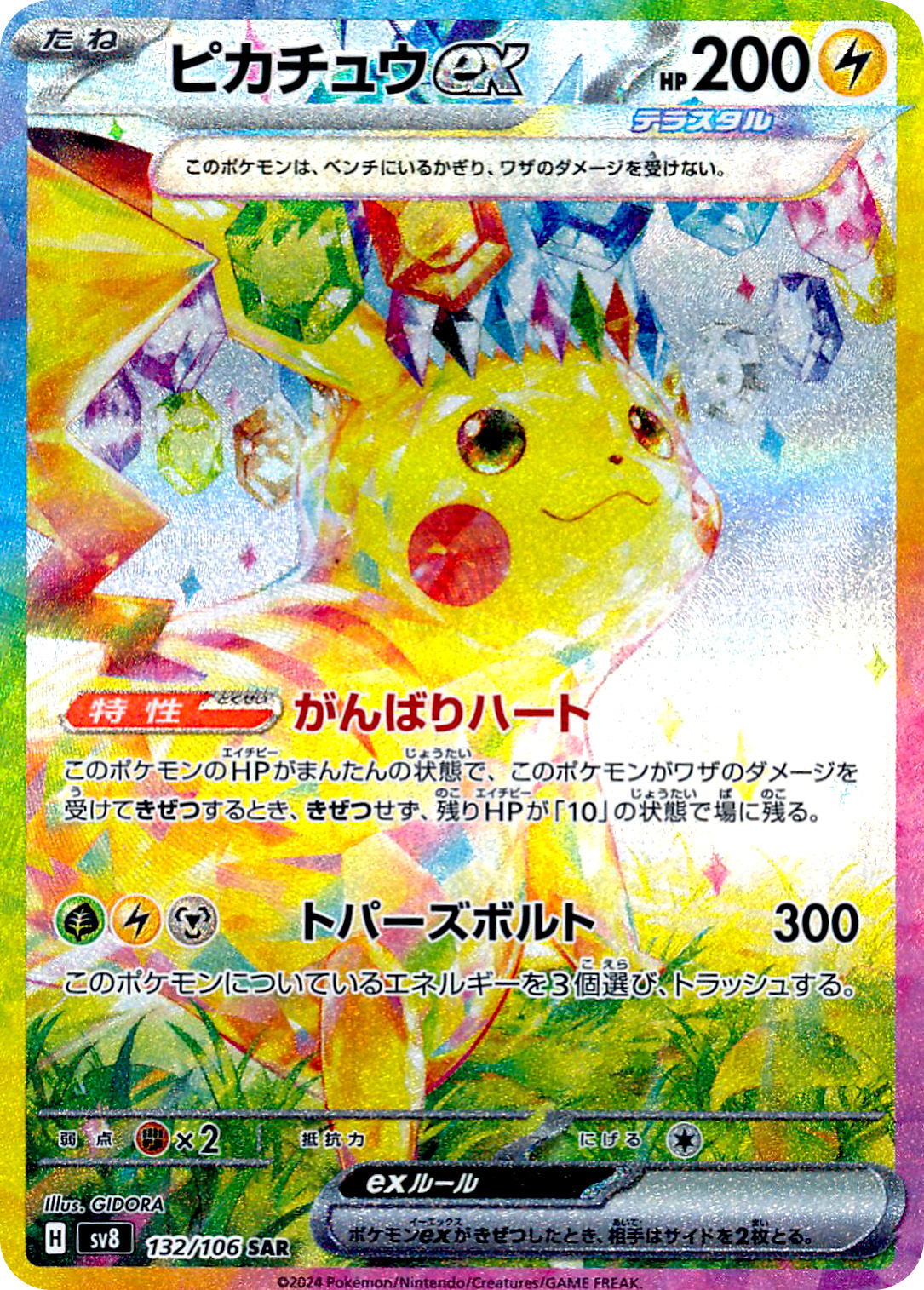 ワザ1:トパーズボルト 草雷鋼 300 このポケモンについているエネルギーを3個選び、トラッシュする。