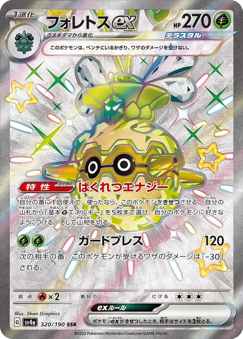 フォレトスexのカード情報を徹底解説!カード画像や効果テキストに加え、前週比高騰・下落ランキング、高額カードランキングを掲載。収録シリーズ・レアリティ別にショップ価格や相場も比較でき、購入やトレードの判断に役立ちます。