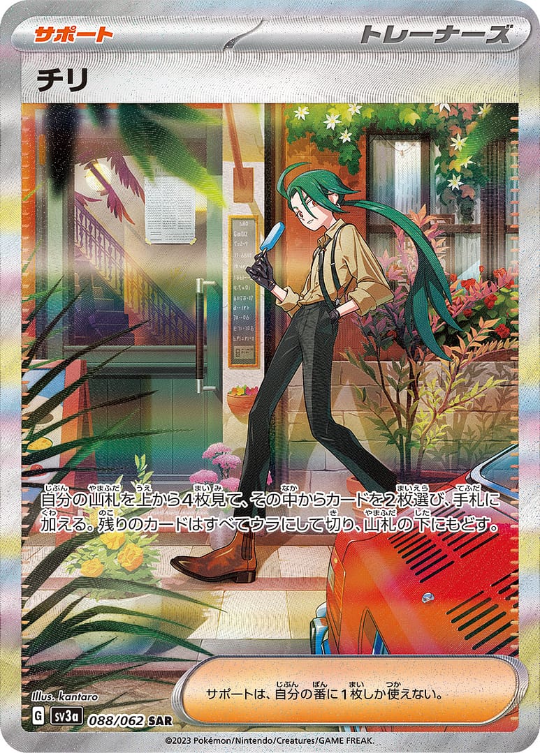 説明文:自分の山札を上から4枚見て、その中からカードを2枚選び、手札に加える。残りのカードはすべてウラにして切り、山札の下にもどす。