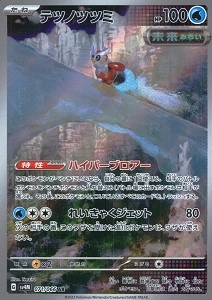 特性:ハイパーブロアー このポケモンがベンチにいるなら、自分の番に1回使える。相手のバトルポケモンをベンチポケモンと入れ替える(バトル場に出すポケモンは相手が選ぶ)。その後、このポケモンと、ついているすべてのカードを、トラッシュする。