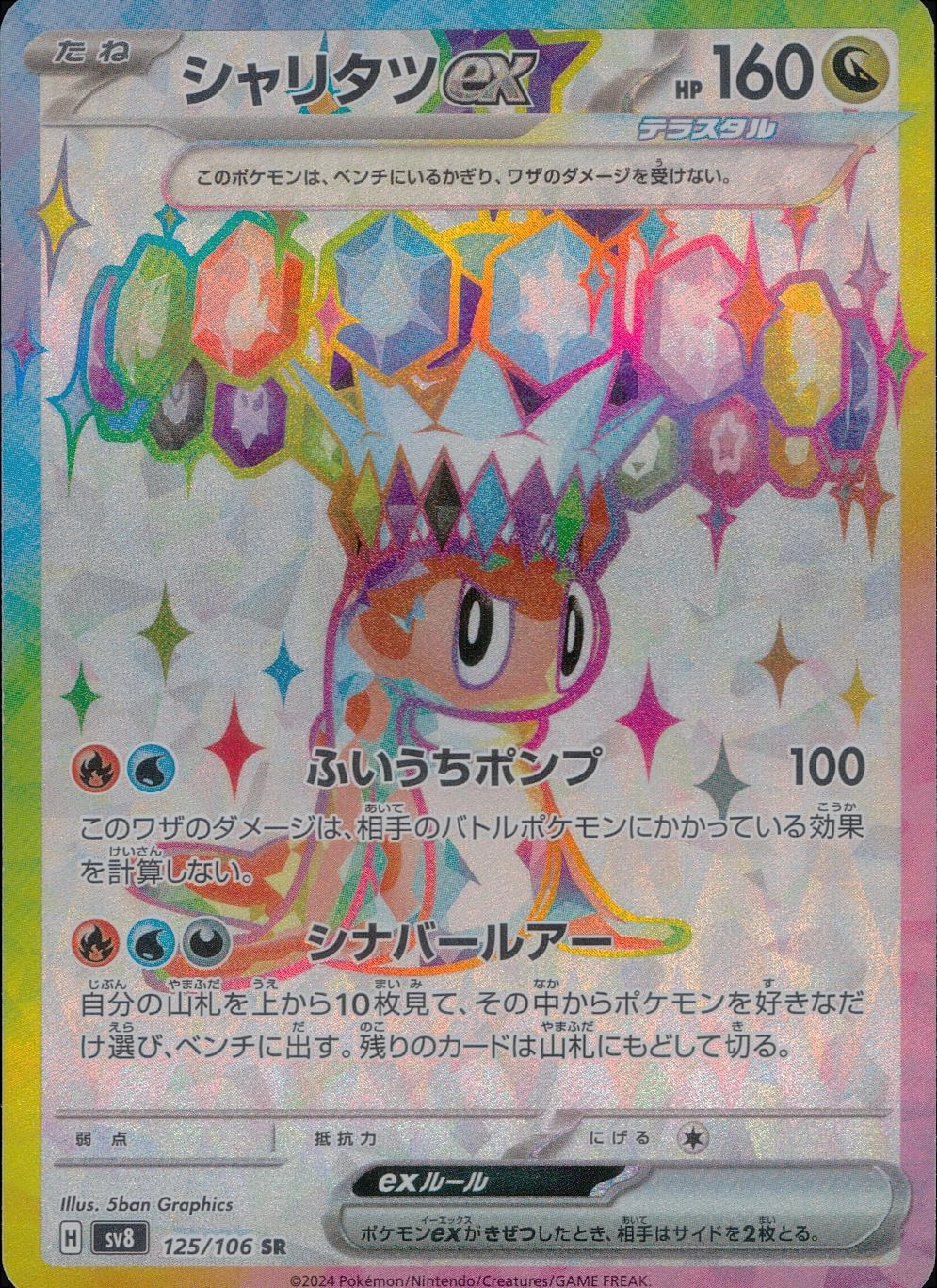 ワザ2:シナバールアー 炎水悪 自分の山札を上から10枚見て、その中からポケモンを好きなだけ選び、ベンチに出す。残りのカードは山札にもどして切る。