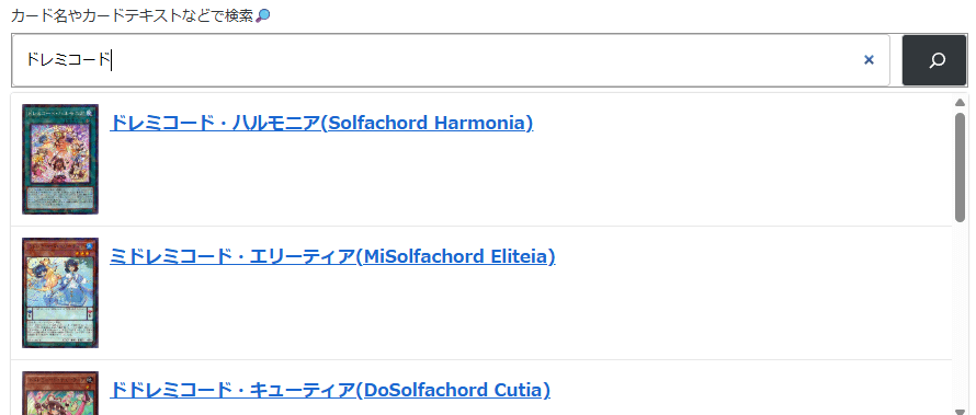 カード名だけでなく、英語名やカードテキストの一部でも検索可能ですが、現在一部カードについては対応を進めている段階のため、正式な日本語名称での検索を推奨しています。
