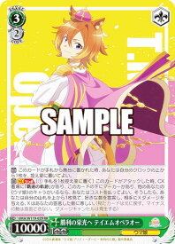 勝利の栄光へ テイエムオペラオー(UMA/W119-029SP)- 劇場版『ウマ娘 プリティーダービー 新時代の扉』サイド:種類:キャラレベル:3色:パワー:10000ソウル:コスト:2レアリティ:SPトリガー:特徴:ウマ娘フレーバー:-【自】 このカードが手札から舞台に置かれた時、あなたは自分のクロックの上から1枚を、控え室に置いてよい。【自】【CXコンボ】[(1) 手札を1枚控え室に置く] このカードがアタックした時、CX置場に「覇道の軌跡」があり、このカードの下にマーカーがあり、他のあなたの《ウマ娘》のキャラがいるなら、あなたはコストを払ってよい。そうしたら、あなたは自分の山札を上から1枚見て、好きな数を宣言し、相手にXダメージを与える。Xはあなたの宣言した数に等しい。(見たカードは元に戻す。マイナスの数は宣言できない。ダメージキャンセルは発生する)