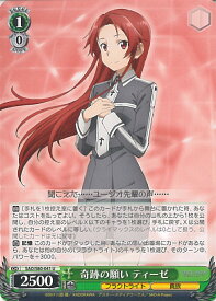 奇跡の願い ティーゼ(SAO/S80-041)-ソードアート・オンライン アリシゼーション Vol.2サイド:種類:キャラレベル:1色:パワー:2500ソウル:コスト:0レアリティ:Uトリガー:-特徴:フラクトライト・貴族フレーバー:聞こえた……ユージオ先輩の声……【自】[手札を1枚控え室に置く] このカードが手札から舞台に置かれた時、あなたはコストを払ってよい。そうしたら、あなたは自分の山札の上から1枚を公開し、自分の控え室のレベルX以下のキャラを1枚選び、手札に戻す。Xは公開されたカードのレベルに等しい。(クライマックスのレベルは0として扱う。公開したカードは元に戻す)【自】 記憶 このカードがアタックした時、あなたの思い出置場にカードがあるなら、あなたは他の自分の《フラクトライト》のキャラを1枚選び、そのターン中、パワーを+3000。
