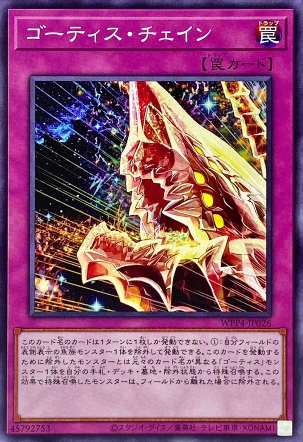 このカード名のカードは1ターンに1枚しか発動できない。1:自分フィールドの表側表示の魚族モンスター1体を除外して発動できる。このカードを発動するために除外したモンスターとは元々のカード名が異なる「ゴーティス」モンスター1体を自分の手札・デッキ・墓地・除外状態から特殊召喚する。この効果で特殊召喚したモンスターは、フィールドから離れた場合に除外される。