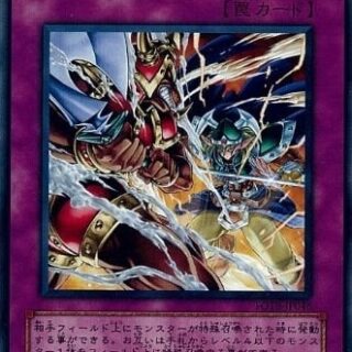 このカードは特殊召喚できない。1:LPを半分払って発動できる。フィールドの他のカードを全て破壊し除外する。このカードの攻撃力は、この効果で破壊したカードの数×300アップする。2:このカードを召喚・反転召喚したターンのエンドフェイズに発動する。このカードを墓地へ送る。