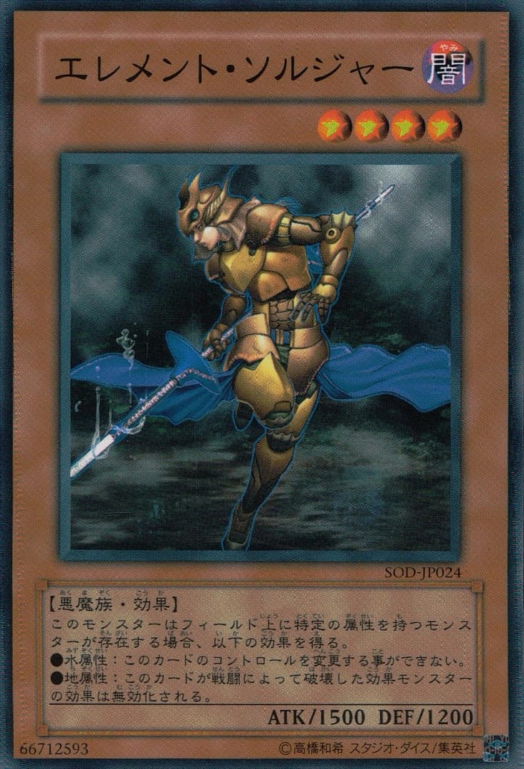 エレメント・ソルジャーのカード情報を徹底解説!カード画像や効果テキストに加え、前週比高騰・下落ランキング、高額カードランキングを掲載。収録シリーズ・レアリティ別にショップ価格や相場も比較でき、購入やトレードの判断に役立ちます。