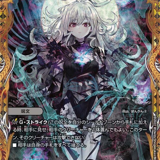 このカード名の12の効果はそれぞれ1ターンに1度しか使用できない。1:自分か相手の墓地の光・闇属性モンスター1体を対象として発動できる(相手フィールドにモンスターが存在する場合、この効果は相手ターンでも発動できる)。そのモンスターを除外し、このカードを手札から特殊召喚する。2:相手が儀式・融合・S・X・Lモンスターを特殊召喚した場合、自分フィールドの他の光・闇属性モンスター1体をリリースし、その特殊召喚されたモンスター1体を対象として発動できる。そのモンスターを除外する。