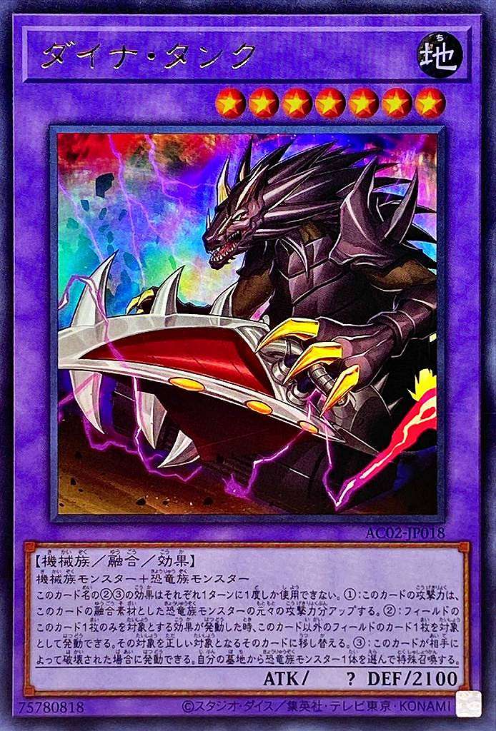 機械族モンスター+恐竜族モンスターこのカード名の23の効果はそれぞれ1ターンに1度しか使用できない。1:このカードの攻撃力は、このカードの融合素材とした恐竜族モンスターの元々の攻撃力分アップする。2:フィールドのこのカード1枚のみを対象とする効果が発動した時、このカード以外のフィールドのカード1枚を対象として発動できる。その対象を正しい対象となるそのカードに移し替える。3:このカードが相手によって破壊された場合に発動できる。自分の墓地から恐竜族モンスター1体を選んで特殊召喚する。
