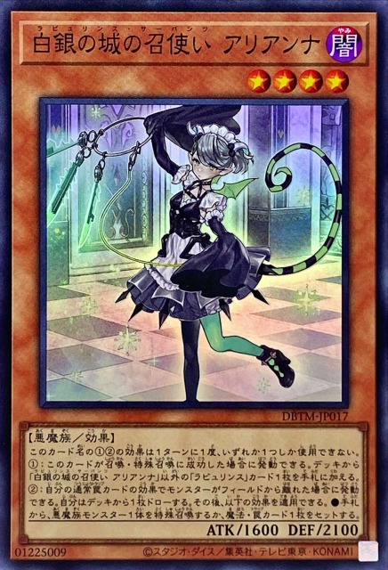 このカード名の12の効果は1ターンに1度、いずれか1つしか使用できない。1:このカードが召喚・特殊召喚に成功した場合に発動できる。デッキから「白銀の城の召使い アリアンナ」以外の「ラビュリンス」カード1枚を手札に加える。2:自分の通常罠カードの効果でモンスターがフィールドから離れた場合に発動できる。自分はデッキから1枚ドローする。その後、以下の効果を適用できる。●手札から、悪魔族モンスター1体を特殊召喚するか、魔法・罠カード1枚をセットする。