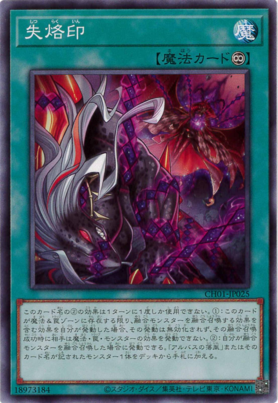 このカード名の2の効果は1ターンに1度しか使用できない。1:このカードが魔法&罠ゾーンに存在する限り、融合モンスターを融合召喚する効果を含む効果を自分が発動した場合、その発動は無効化されず、その融合召喚成功時に相手は魔法・罠・モンスターの効果を発動できない。2:自分が融合モンスターを融合召喚した場合に発動できる。「アルバスの落胤」またはそのカード名が記されたモンスター1体をデッキから手札に加える。