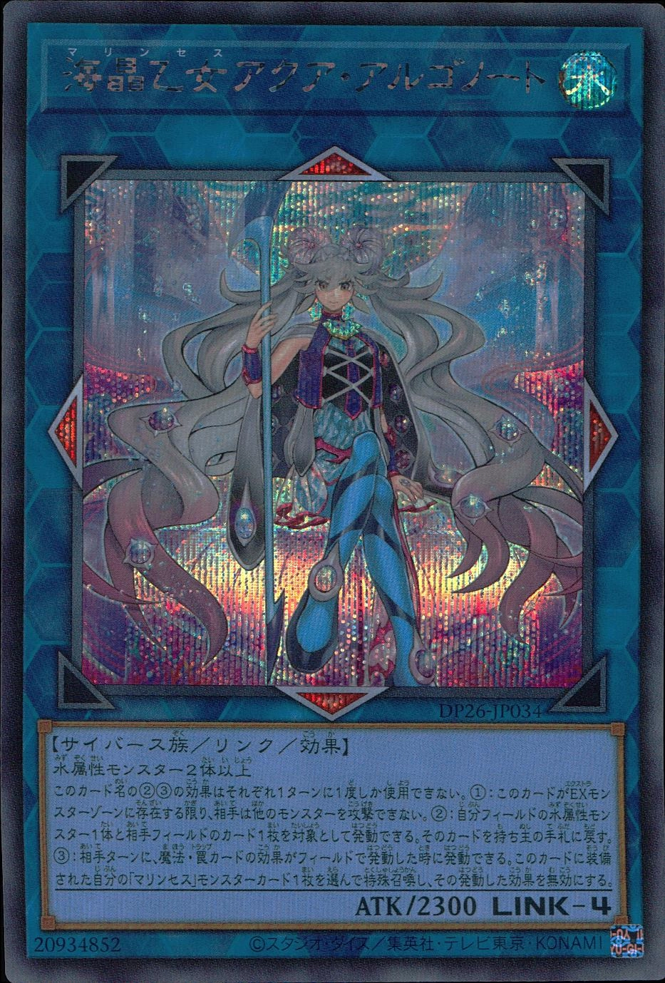 水属性モンスター2体以上このカード名の23の効果はそれぞれ1ターンに1度しか使用できない。1:このカードがEXモンスターゾーンに存在する限り、相手は他のモンスターを攻撃できない。2:自分フィールドの水属性モンスター1体と相手フィールドのカード1枚を対象として発動できる。そのカードを持ち主の手札に戻す。3:相手ターンに、魔法・罠カードの効果がフィールドで発動した時に発動できる。このカードに装備された自分の「マリンセス」モンスターカード1枚を選んで特殊召喚し、その発動した効果を無効にする。