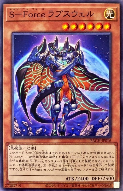 このカード名の12の効果はそれぞれ1ターンに1度しか使用できない。1:このカードが特殊召喚に成功した場合、「S-Force ラプスウェル」以外の自分の墓地の「S-Force」モンスター1体を対象として発動できる。そのモンスターを特殊召喚する。2:手札から「S-Force」カード1枚を除外して発動できる。自分の「S-Force」モンスターの正面の相手モンスターを全て破壊する。