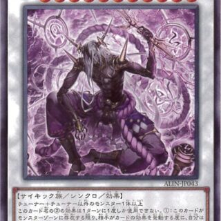 このカード名のカードは1ターンに1枚しか発動できない。1:自分フィールドの表側表示モンスター1体を対象として発動できる。そのモンスターを破壊し、そのモンスターとは元々の種族・属性が異なり、そのモンスターの元々のレベルより低いレベルを持つモンスター1体をデッキから守備表示で特殊召喚する。この効果で特殊召喚したモンスターの効果は無効化される。