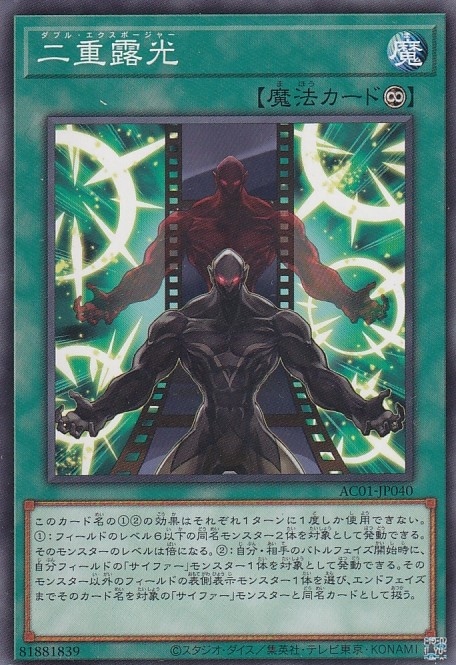 このカード名の12の効果はそれぞれ1ターンに1度しか使用できない。1:フィールドのレベル6以下の同名モンスター2体を対象として発動できる。そのモンスターのレベルは倍になる。2:自分・相手のバトルフェイズ開始時に、自分フィールドの「サイファー」モンスター1体を対象として発動できる。そのモンスター以外のフィールドの表側表示モンスター1体を選び、エンドフェイズまでそのカード名を対象の「サイファー」モンスターと同名カードとして扱う。