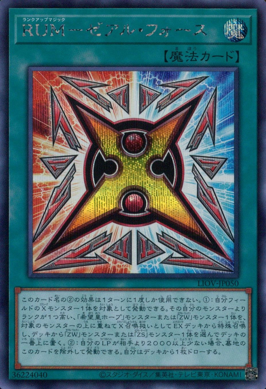 このカード名の2の効果は1ターンに1度しか使用できない。1:自分フィールドのXモンスター1体を対象として発動できる。その自分のモンスターよりランクが1つ高い、「希望皇ホープ」モンスターまたは「ZW」モンスター1体を、対象のモンスターの上に重ねてX召喚扱いとしてEXデッキから特殊召喚し、デッキから「ZW」モンスターまたは「ZS」モンスター1体を選んでデッキの一番上に置く。2:自分のLPが相手より2000以上少ない場合、墓地のこのカードを除外して発動できる。自分はデッキから1枚ドローする。
