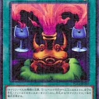 このカード名の2の効果は1ターンに1度しか使用できない。1:自分・相手ターンに1度、発動できる。相手の手札を全て確認する。このカードのカード名はエンドフェイズまで「千眼の邪教神」として扱う。2:このカードが除外された場合、または効果で墓地へ送られた場合、相手フィールドの効果モンスター1体を対象として発動できる。その効果モンスターを自分フィールドの通常召喚できない「サクリファイス」モンスター1体に装備する。この効果でモンスターを装備している限り、その攻撃力分、装備モンスターの攻撃力はアップする。